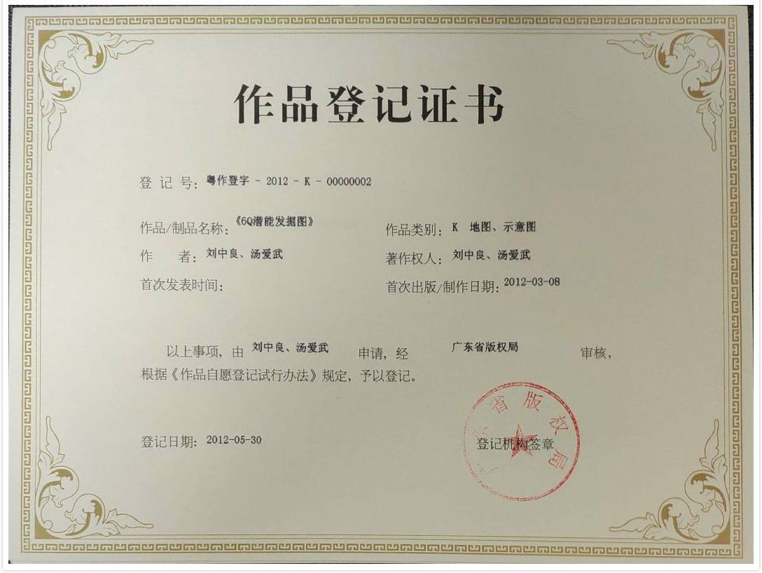 6Q包含:SQ灵性商数、IQ智力商数、EQ情感商数、CQ创造力商数、AQ逆境商数、RQ资源管理商数。